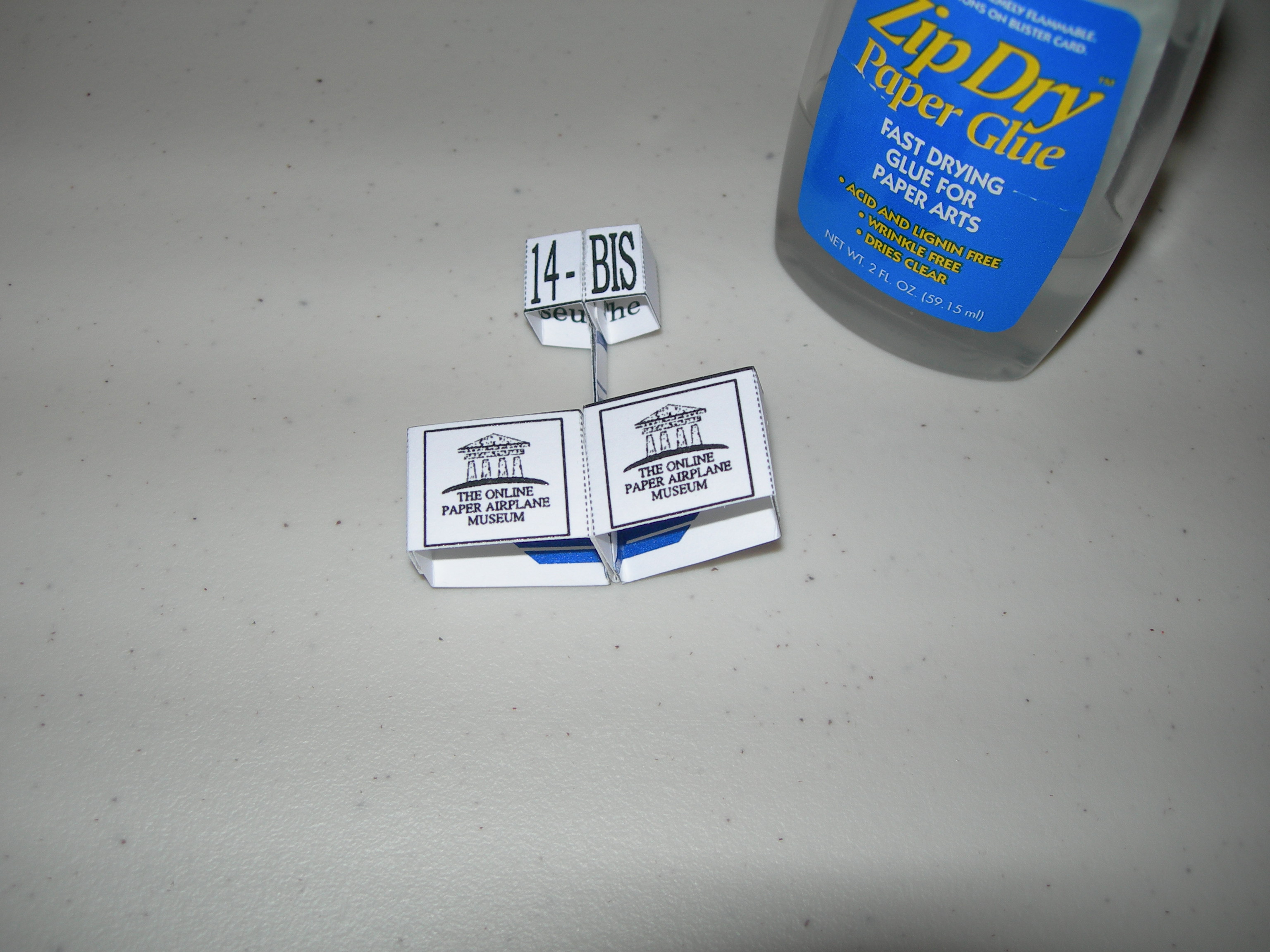 | Step 7 - Glue the side tabs of the upper wing over the tabs on the lower wing. |
