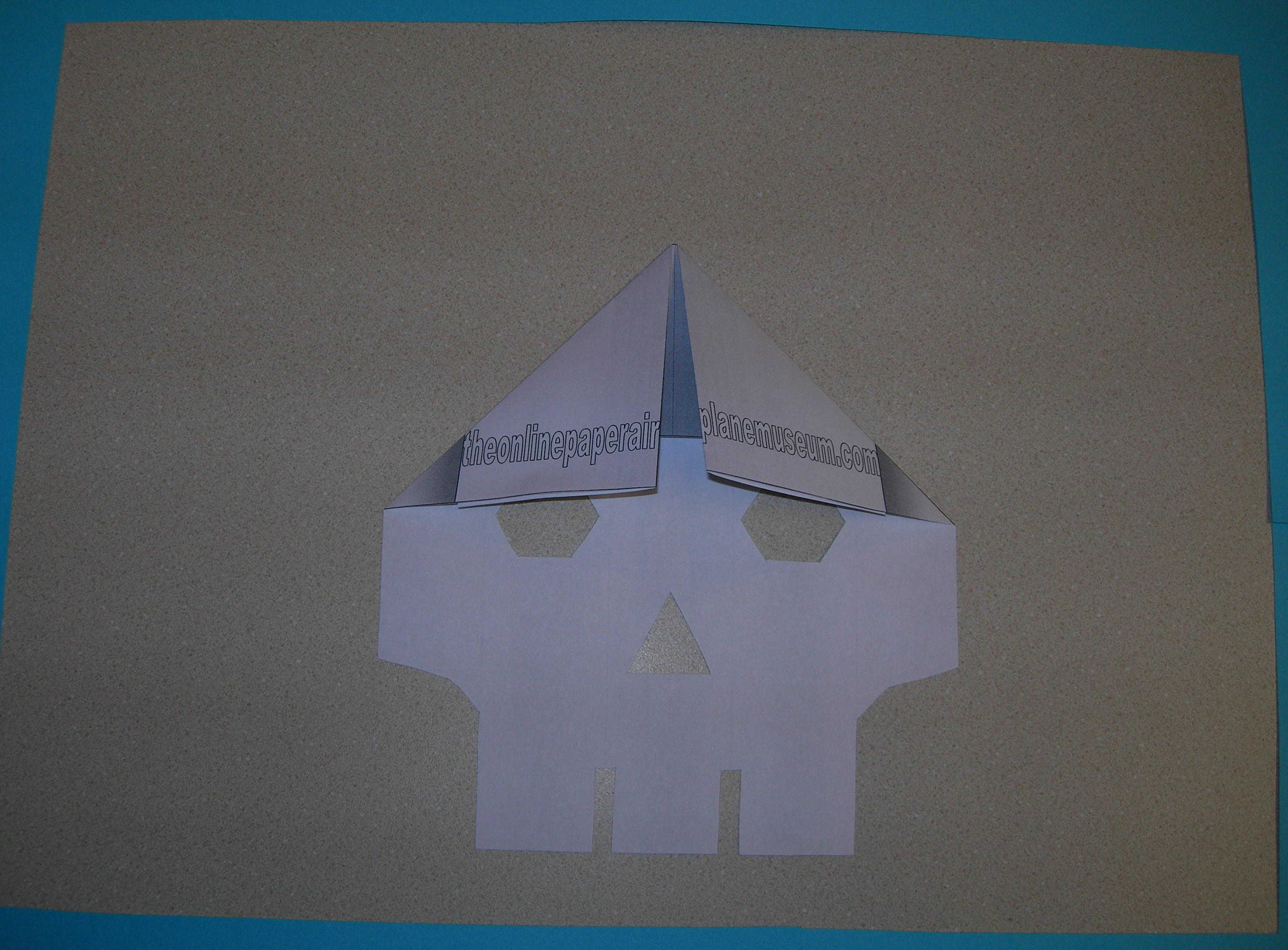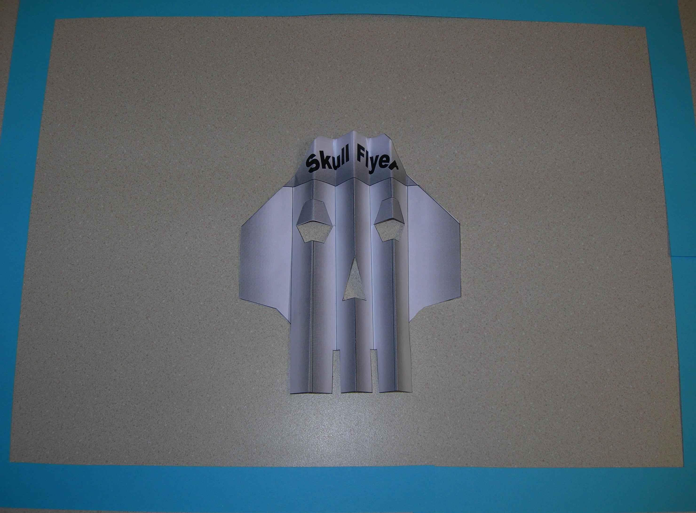| Step 16 - This is the top of the Skull Flyer. Pull on the winglets to expand the accordion folds. |